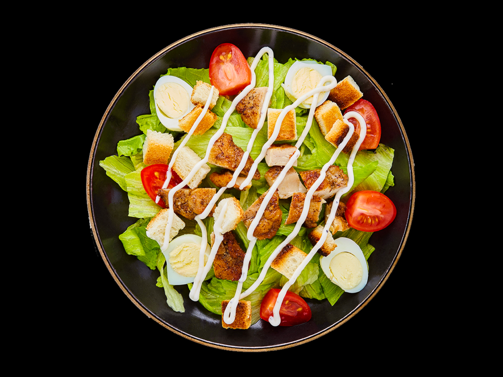 Курочка, помидорки, сыр, айсберг, гренки, соус цезарь